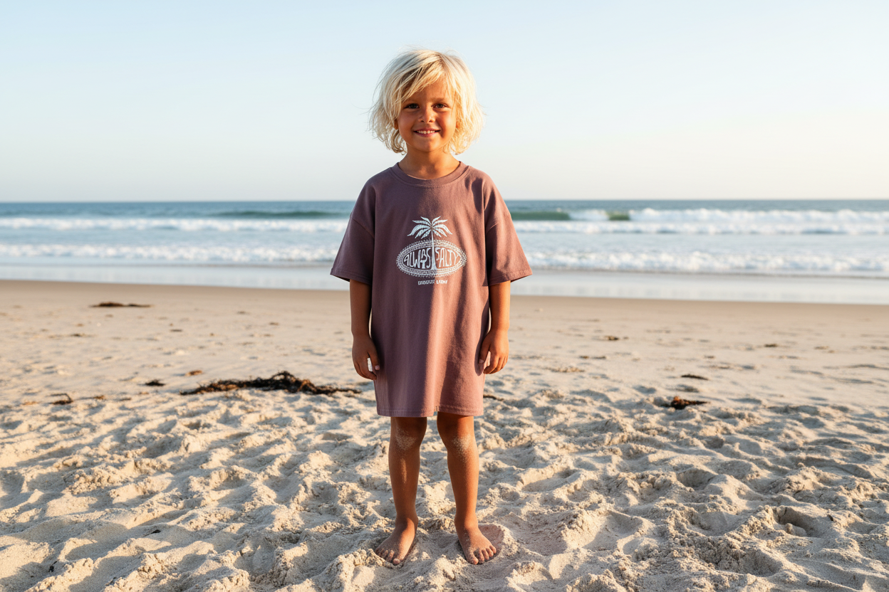 This tee is for the kids who are permanently salty no matter how many times you wash them. The Always Salty Kids Tee is made for beach runs, snack breaks, sandy mischief and that wild little sparkle that comes with growing up by the sea.