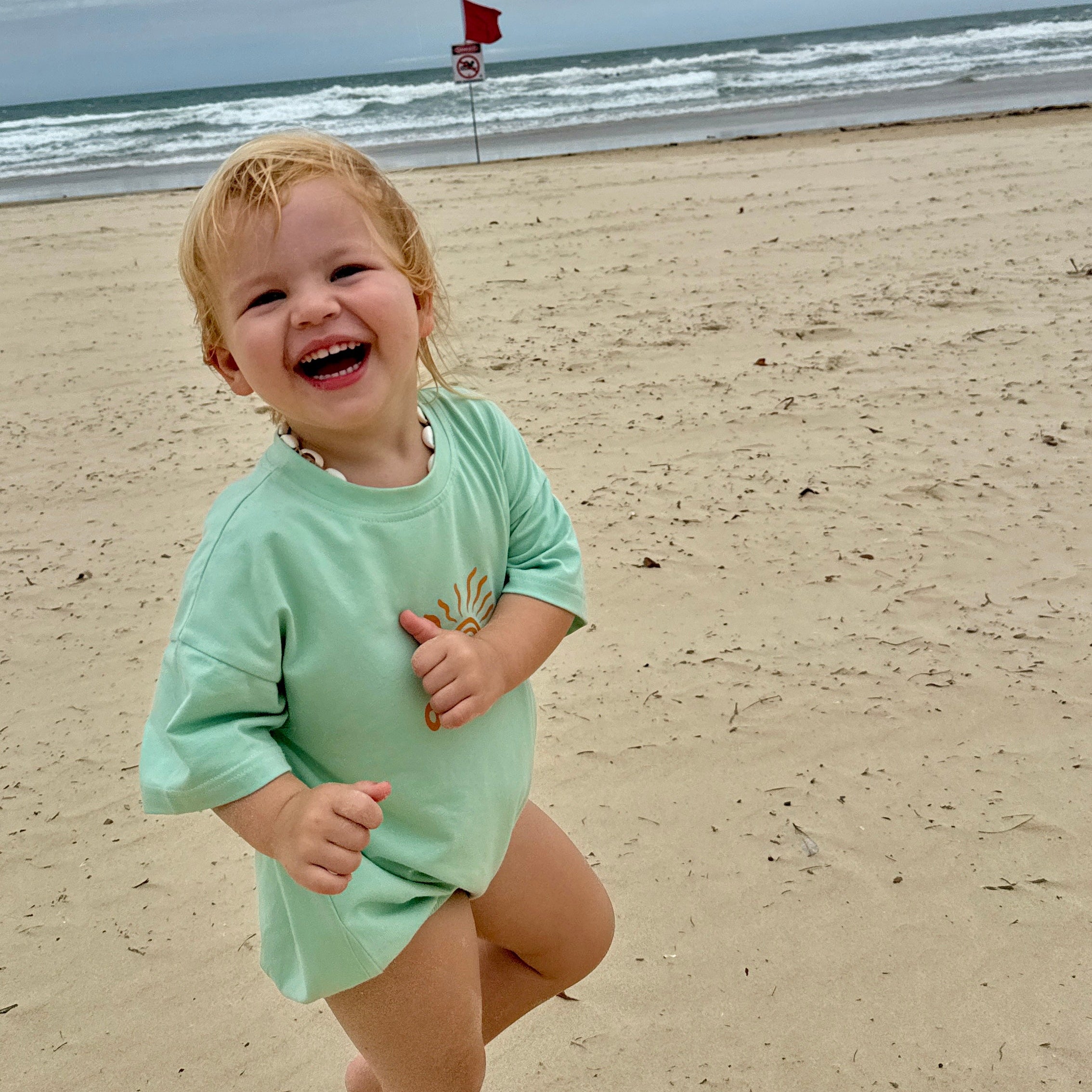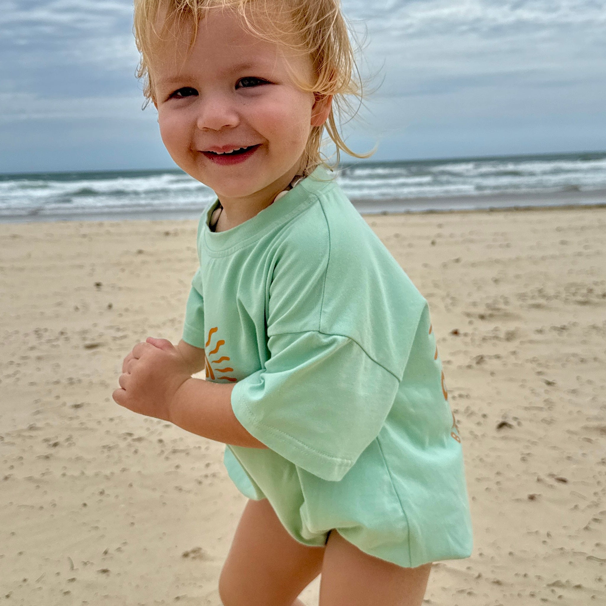 This romper is for the little ocean babes who were born with sandy toes and salty souls. The Ocean Babe Romper is soft, comfy and made for tiny beach lovers who live for sunshine, snacks and sea air.